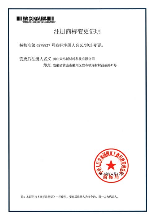 商標(biāo)變更證明(2018年)